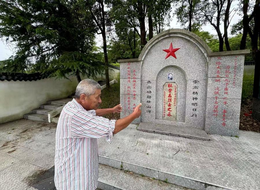 陳金國在烈士墓前講述杜崇杰生平。新華社記者 龔聯(lián)康 攝