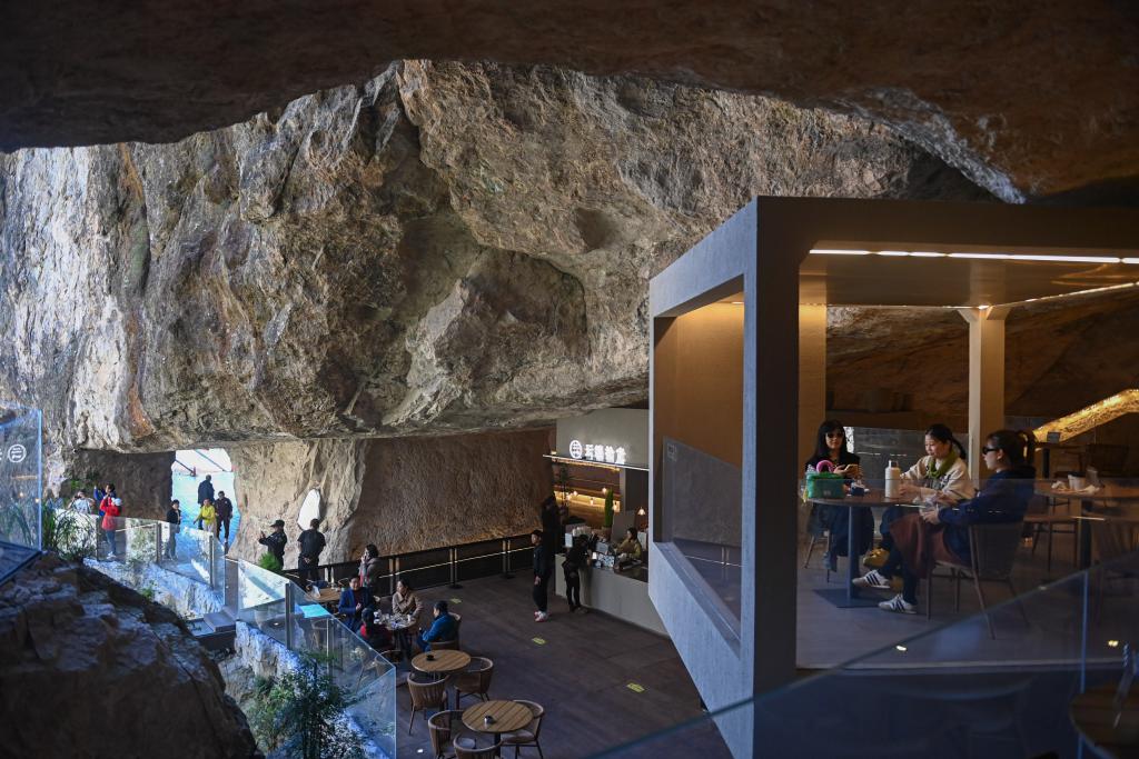 2024年11月26日,游客在雁蕩山“懸崖上的咖啡館”休閑。新華社記者黃宗治 攝