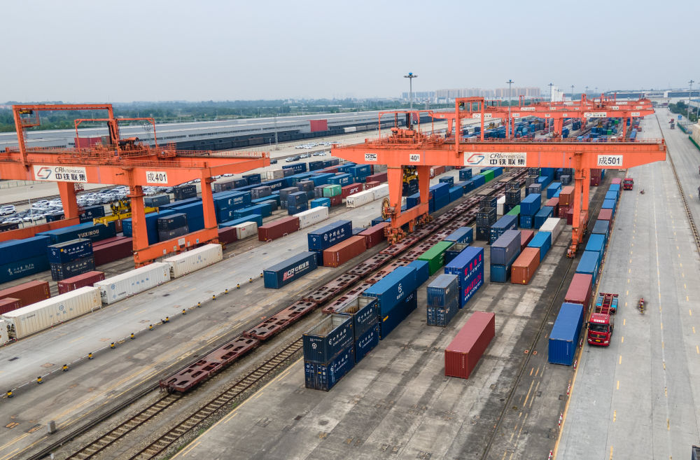 這是成都國際鐵路港(2024年6月13日攝,無人機照片)。 新華社記者 唐文豪 攝