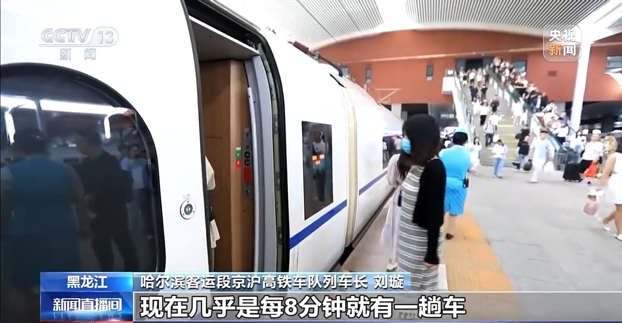 哈爾濱客運(yùn)段京滬高鐵車隊(duì)列車長 劉璇:從最開始每天十幾趟,現(xiàn)在最短間隔8分鐘就有一趟車,哈爾濱客運(yùn)段為旅客提供更優(yōu)質(zhì)、更好的出行體驗(yàn)。