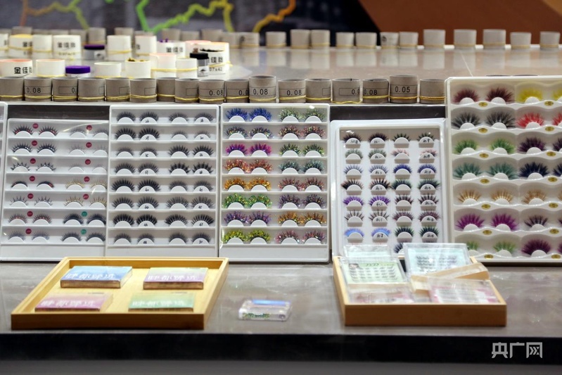 展臺上展覽的各式各樣的假睫毛產(chǎn)品(央廣網(wǎng)記者 唐磊 攝)