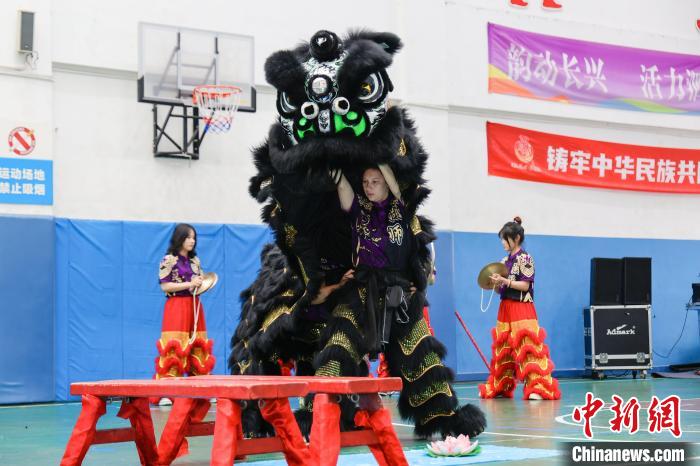 莎何娜斯(中間)表演舞獅。湖州師范學(xué)院供圖