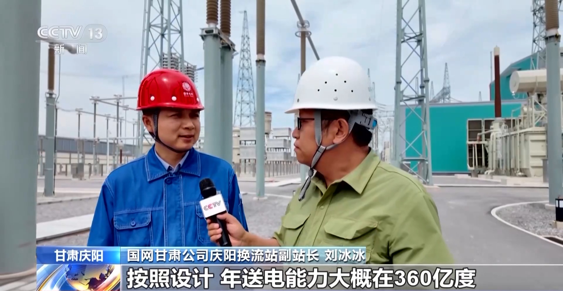 國(guó)網(wǎng)甘肅公司慶陽(yáng)換流站副站長(zhǎng) 劉冰冰:按照設(shè)計(jì),年送電能力大概在360億度,可以滿足1000萬(wàn)戶家庭一年的生活用電,清潔能源占比大概在50%以上。