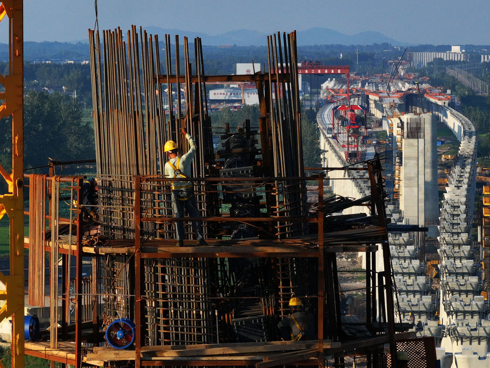在江蘇省南京市寧淮城際鐵路(南京至淮安)施工現(xiàn)場,建設(shè)者們堅(jiān)守崗位,建設(shè)項(xiàng)目部采取錯(cuò)時(shí)施工、發(fā)放防暑藥品等方式,保護(hù)建設(shè)者安全,確保工程建設(shè)有序推進(jìn)。
