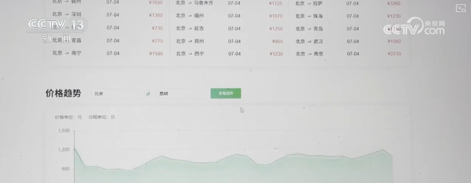 目前,昆明、烏魯木齊、西安等長(zhǎng)線目的地的暑期機(jī)票價(jià)格已開始小幅上漲。記者查詢發(fā)現(xiàn),以北京—昆明機(jī)票為例,7月上旬價(jià)格在千元左右,7月中旬開始至8月中旬,價(jià)格小幅上漲,均價(jià)在1200元到1500元之間。