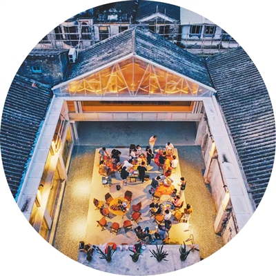 2015年,李繼津和合伙人看上了塘口舊墟兩處建筑,“原先是舊糧倉周邊的五金廠、鐘表廠,雖然建筑很舊,但很有設(shè)計感,而且舊墟與周圍的村子距離很近,有做社區(qū)改造的潛力。”說干就干,舊工廠逐漸被改造為時尚的青年社區(qū)空間——“塘口空間”,餐廳、青年旅舍、劇場、活動空間等一應(yīng)俱全,舊工廠里原有的一些制造機械作為歷史記憶的“載體”也被保留下來。“建筑不能脫離鄉(xiāng)村。”李繼津說。