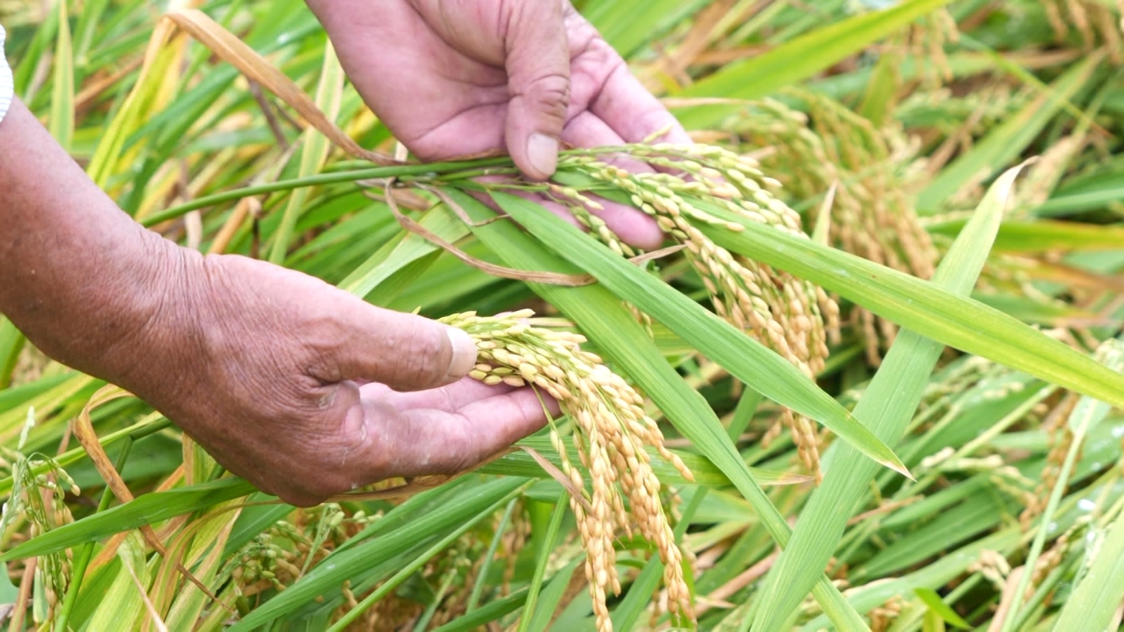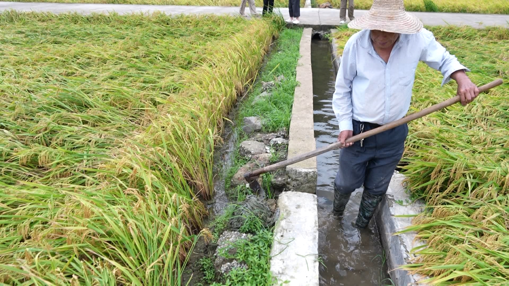 農(nóng)技專家楊煥清來到現(xiàn)場指導(dǎo)農(nóng)戶搶收,“它倒平后很容易會發(fā)芽,稻谷發(fā)芽以后就沒有價值了?,F(xiàn)在主要就是開溝排水,一有晴天馬上搶收?!?/p>