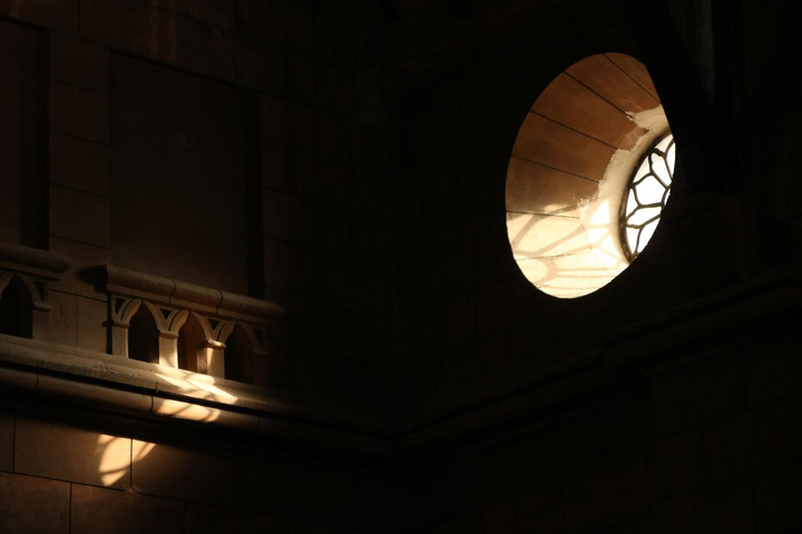 傍晚時分,夏風(fēng)習(xí)習(xí),天色黛青。我坐在棕色的椅子上,悠揚的大提琴聲從穹頂上緩緩落下,浸潤在斑駁的石柱縫隙里,又飄浮于塵埃之上,圓形天窗下有一道水滴形狀的光斑。在這樣的傍晚,每個人都能感受到安里甘的美。