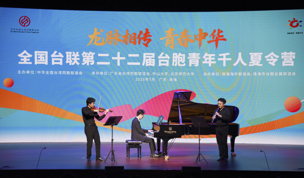 2025年7月4日拍攝的第二十二屆臺(tái)胞青年千人夏令營(yíng)開營(yíng)儀式上的文藝表演。新華社記者 洪澤華 攝