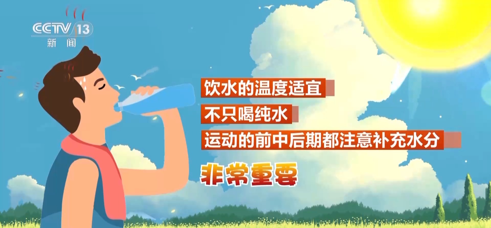 國家體育總局體育科學研究所運動康復研究中心研究員 張漓:高溫天氣下最重要的就是補水。高溫天氣下運動,體溫比較難降下來,身體會出汗,幫我們降溫。