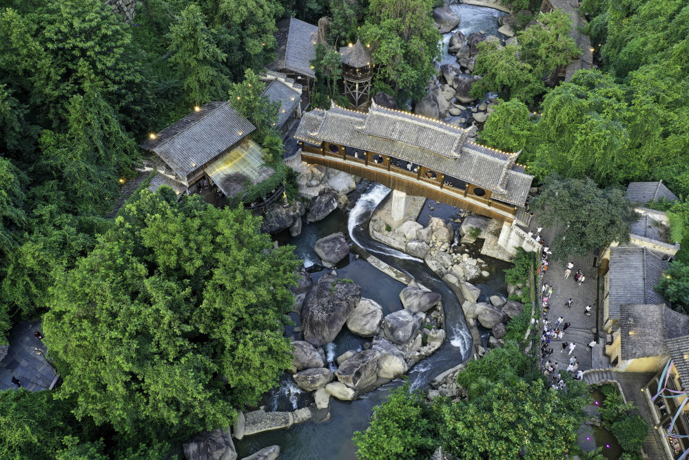 這是7月11日拍攝的望仙谷景區(qū)夜景(無人機(jī)照片)。新華社記者 劉金海 攝