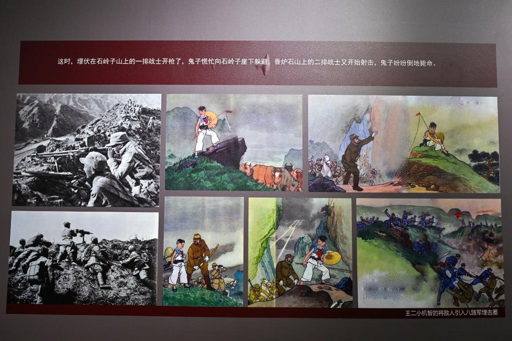 在距離狼牙山不遠的王二小紀(jì)念館里,循環(huán)播放著這首耳熟能詳?shù)母枨陡璩》排@伞贰?/p>