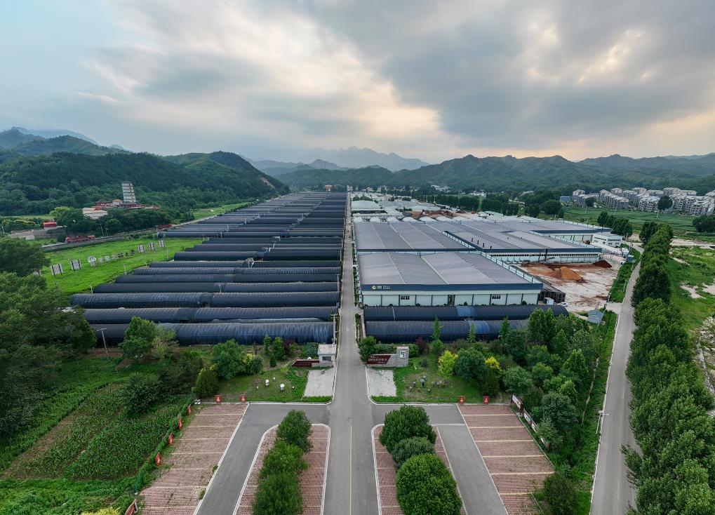 這是7月4日拍攝的阜平縣天生橋鎮(zhèn)食用菌產(chǎn)業(yè)核心園區(qū)(無人機照片)。新華社記者 李鑫 攝