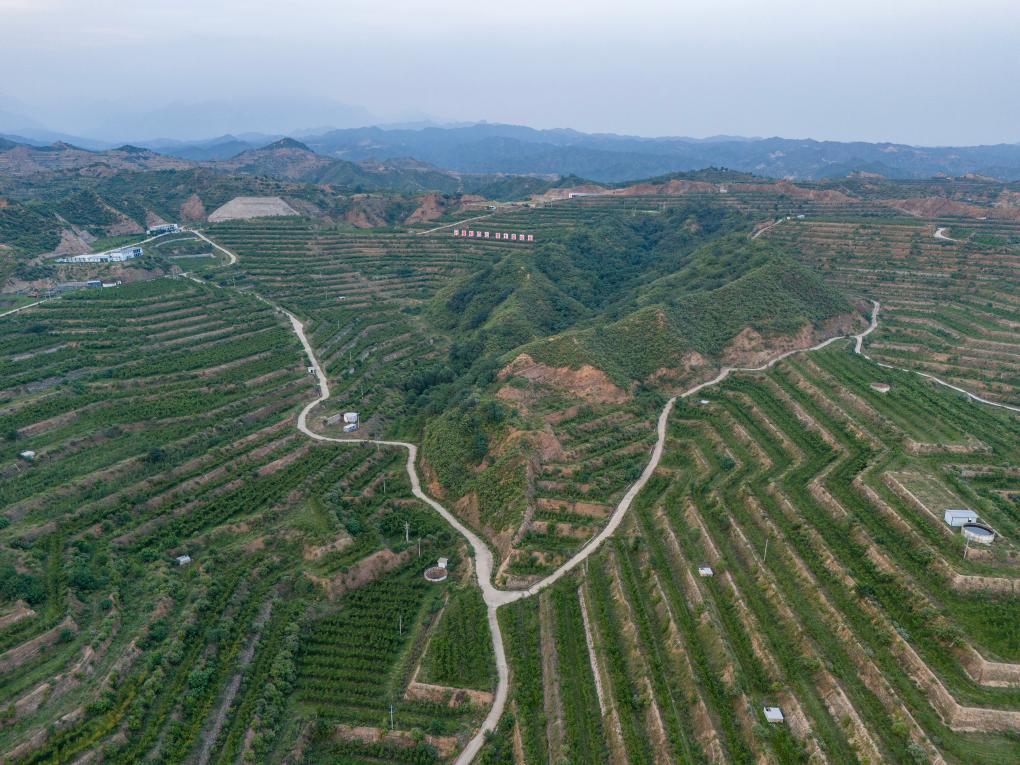 這是7月4日拍攝的阜平縣高效林果產(chǎn)業(yè)示范園區(qū)(無人機照片)。新華社記者 李鑫 攝