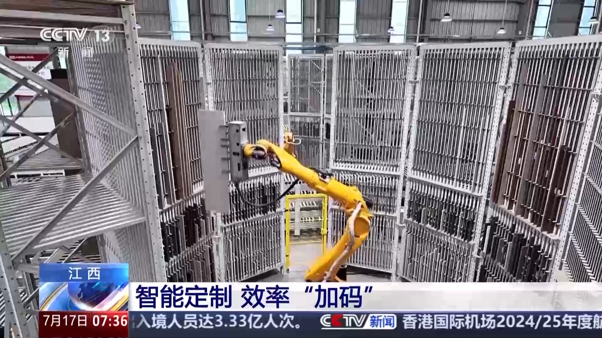 總臺央視記者 張琪:分揀機械臂正將加工好的木板快速存放在書本架上,這一個單元的書架可以存放480片部件板,打造10個柜子,夠一個家庭使用。