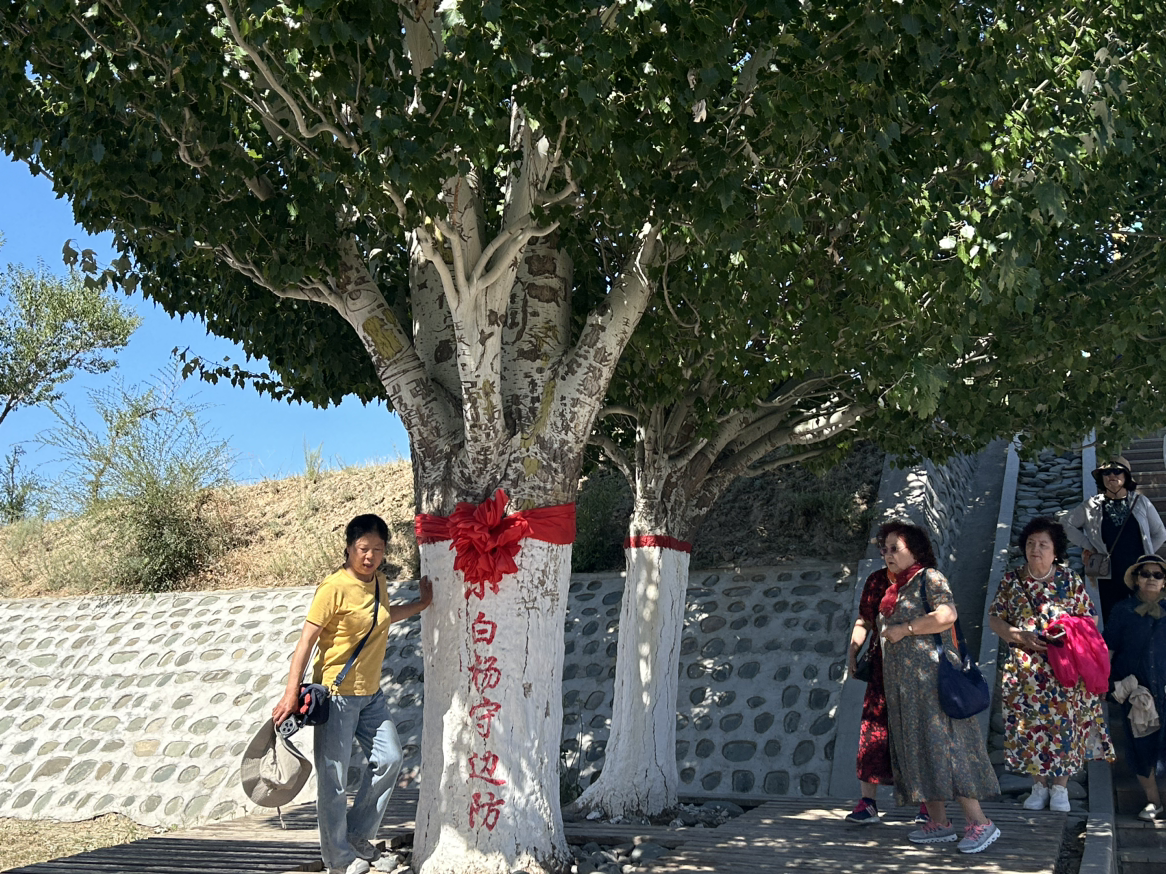 “當(dāng)年這里除了鐵絲網(wǎng)就是石頭山。”見證哨所變遷的兵團職工蔣晶華回憶,官兵們住地窩子、啃干馕,卻始終像那棵白楊一樣“向下扎根”。如今,第二代哨樓旁的白楊樹已成參天大樹,樹干上“守衛(wèi)祖國”的刻字仍清晰可辨。