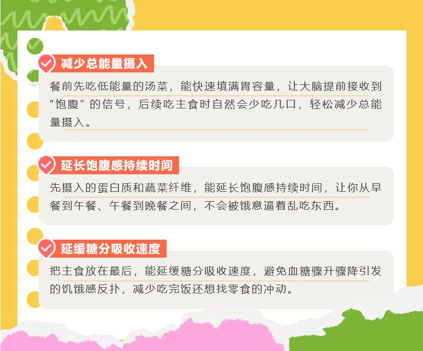 你知道嗎?吃飯時先吃什么、后吃什么,其實(shí)對健康影響不?。『侠淼娘嬍稠樞?,能幫助我們更好地消化吸收、穩(wěn)定血糖,還能控制體重。