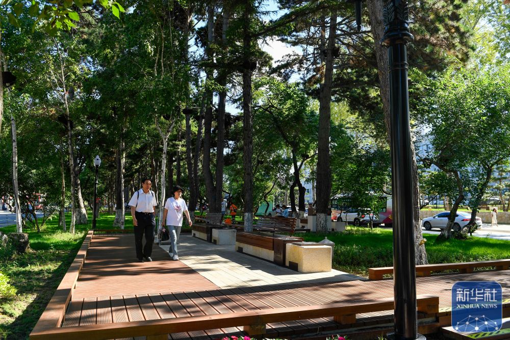 7月30日,游客游覽長(zhǎng)春新民大街。