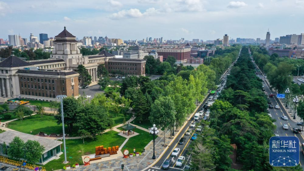 7月30日拍攝的長(zhǎng)春歷史文化博物館和新民大街(無(wú)人機(jī)全景拼接照片)。