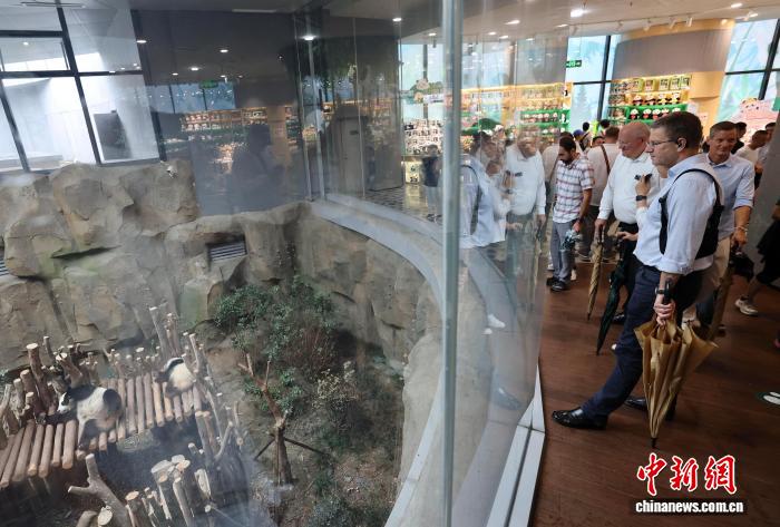 8月7日,部分來(lái)蓉參加成都世運(yùn)會(huì)相關(guān)活動(dòng)的駐華使節(jié)和領(lǐng)館官員來(lái)到成都大熊貓繁育研究基地參觀。 中新社記者 王磊 攝