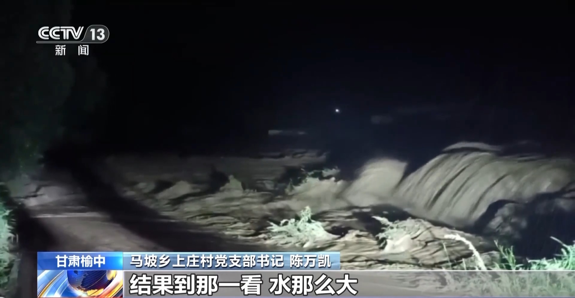 馬坡鄉(xiāng)上莊村黨支部書記 陳萬凱:我是慌呀,慌得我就出來一直在這里轉(zhuǎn)著,轉(zhuǎn)著我就看見變壓器上冒開火了,想看一下變壓器咋回事,結(jié)果到那一看,水那么大。