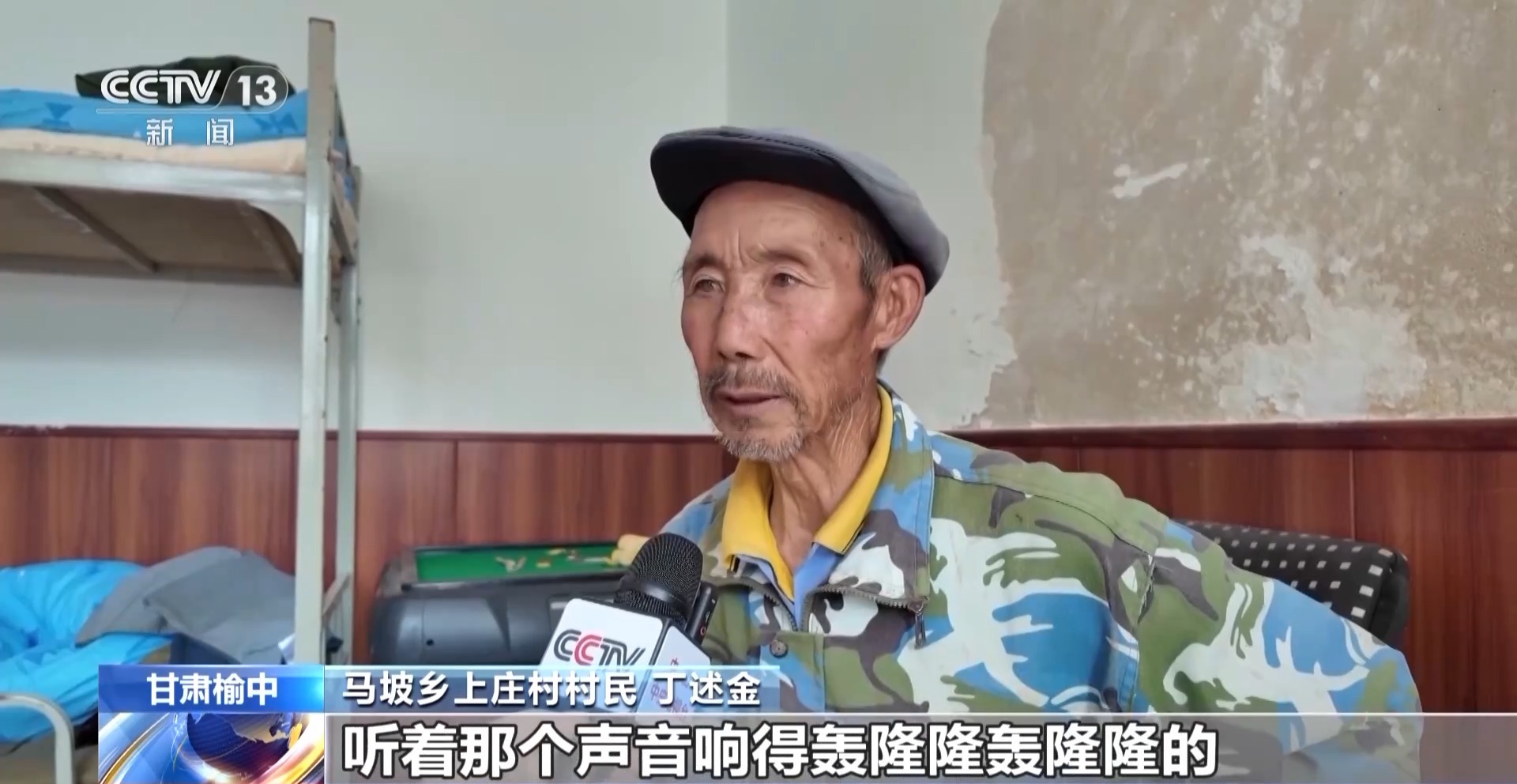馬坡鄉(xiāng)上莊村村民 丁述金:我們是老兩口。我想轉(zhuǎn)移卻不敢走,聽著那個(gè)聲音響得轟隆隆轟隆隆的,聲音大得很,不敢出去了。他們就把我們喊著叫上,一把拉上就出來了。
