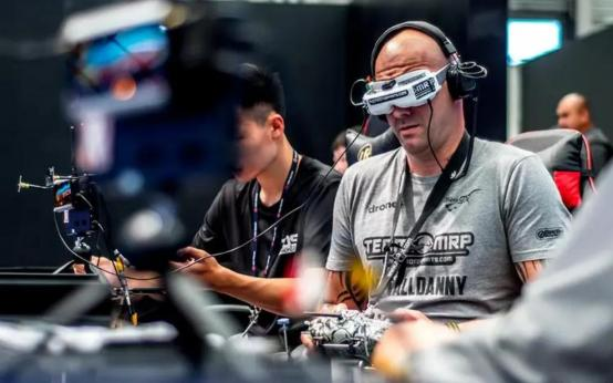 選手通過頭戴式顯示器第一視角操控?zé)o人機(jī)