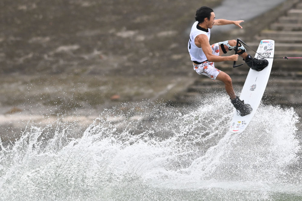 8月10日,日本選手手塚翔太在2025年成都世運(yùn)會(huì)男子尾波滑水自由式比賽中。新華社記者 陳振海 攝