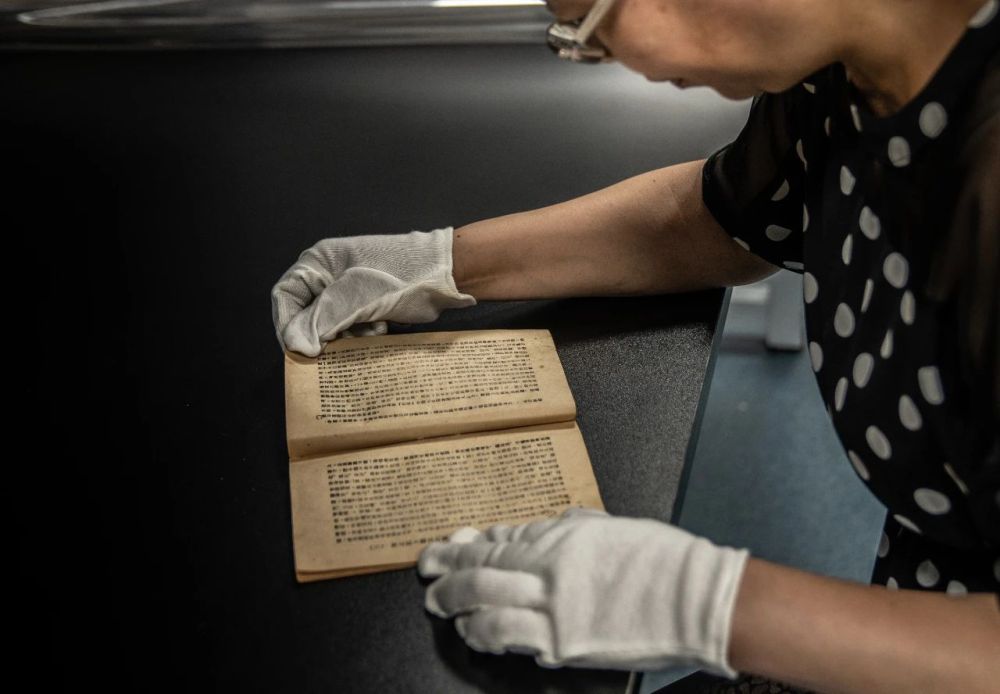 8月4日,遼沈戰(zhàn)役紀念館工作人員展示館內(nèi)收藏的穆青同志采寫的《東北抗日聯(lián)軍斗爭史略》。(遼沈戰(zhàn)役紀念館供圖)