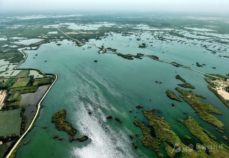 俯瞰塔克拉瑪干沙漠邊緣的拉里昆國(guó)家濕地公園(8月6日無(wú)人機(jī)攝)。天山網(wǎng)-新疆日?qǐng)?bào)記者 鄒懿 攝