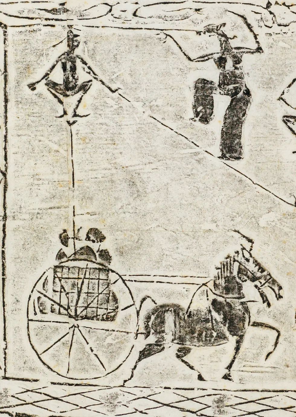 斜索戲車畫像磚以線面結(jié)合的手法分層敘事