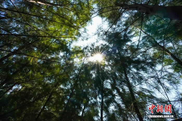 在某島礁,官兵培育的植物種類已達(dá)120余種,植被覆蓋率超過(guò)90%,成片的木麻黃林、抗風(fēng)桐林、大葉欖仁樹林鱗次櫛比地分布在各個(gè)角落,林下土壤表層出現(xiàn)了落葉和枯草形成的腐殖質(zhì),喬、灌、草銜接互補(bǔ)的森林植物群落生長(zhǎng)格局正在加速形成。