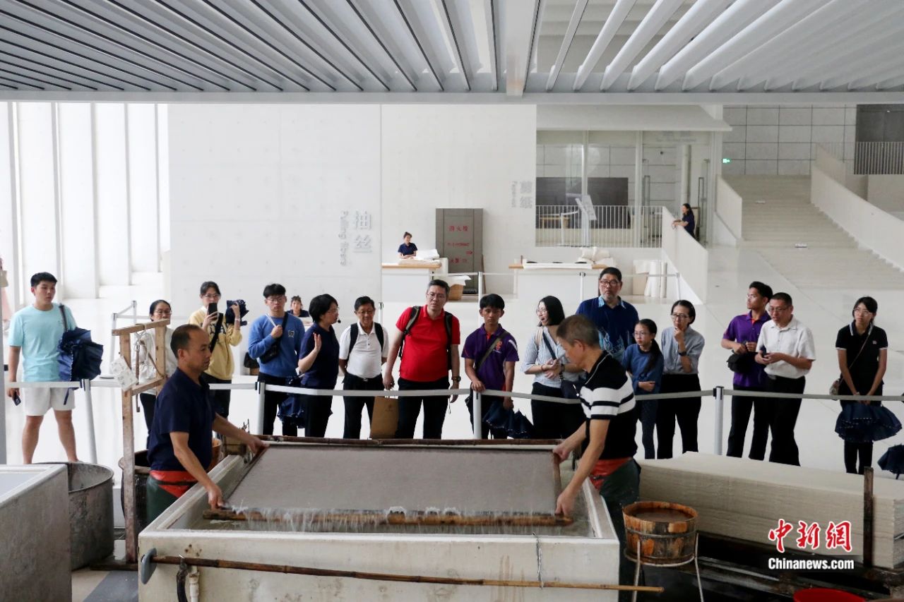 馬來西亞游客在中國宣紙小鎮(zhèn)參觀宣紙撈紙技藝。張強(qiáng) 攝
