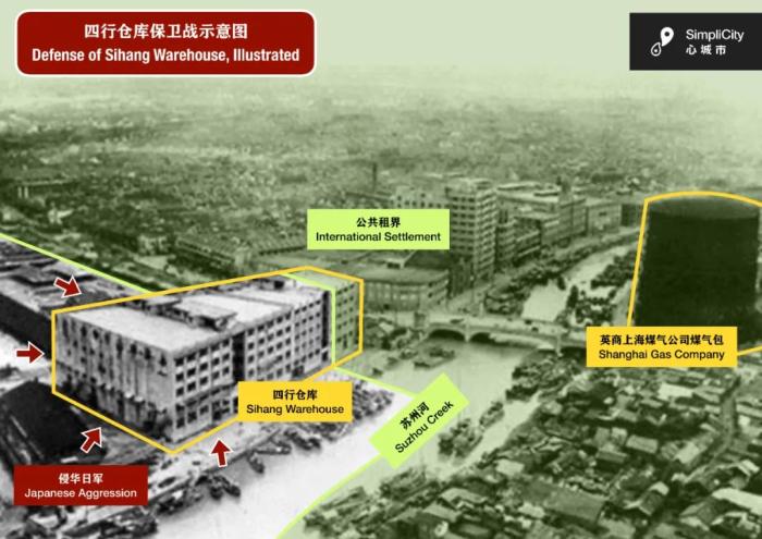 當(dāng)寶山的戰(zhàn)火漸趨白熱化,蘇州河岸的四行倉(cāng)庫(kù)正上演著一場(chǎng)震驚世界的“孤軍奮戰(zhàn)”。