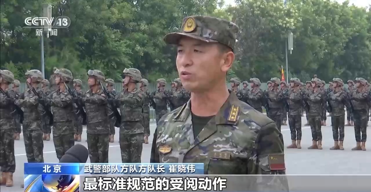 武警部隊方隊方隊長 崔曉偉:目前我們已經(jīng)進(jìn)入最后的沖刺階段,在紀(jì)念抗戰(zhàn)勝利80周年紀(jì)念日當(dāng)天,以最昂揚的精神狀態(tài)、最標(biāo)準(zhǔn)規(guī)范的受閱動作,光榮地接受黨和人民檢閱,接受習(xí)主席檢閱。