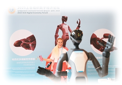 7月11日,嘉賓在2025上合組織數(shù)字經濟論壇上體驗操控人形機器人。