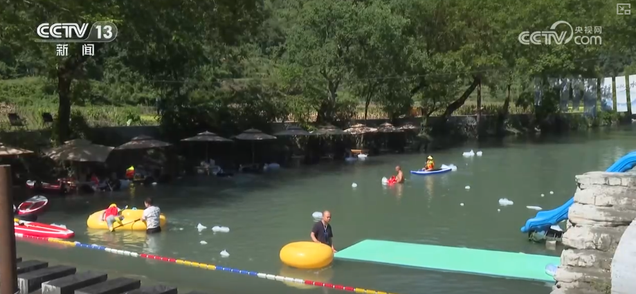 在湖南吉首,洽比河旅游公路串聯(lián)起深山中的9個(gè)傳統(tǒng)苗寨。游客們自駕而來,沿河溯溪露營,體驗(yàn)水上項(xiàng)目,或躲進(jìn)竹椅遮陽傘下,感受清涼愜意。