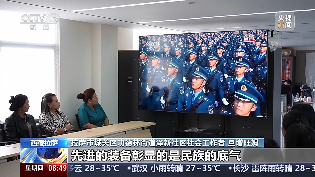 拉薩市城關(guān)區(qū)功德林街道澤新社區(qū)社會(huì)工作者 旦增旺姆:整齊的步伐踏出的是國家的力量,先進(jìn)的裝備彰顯的是民族的底氣,更讓我深刻感受到,強(qiáng)盛的祖國永遠(yuǎn)是我們最堅(jiān)實(shí)的依靠。