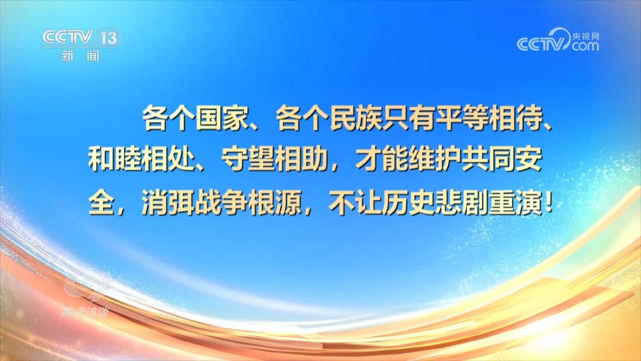 楊鳳城:“總書記在這次紀(jì)念抗戰(zhàn)勝利80周年的講話,還有過去的講話,都特別強(qiáng)調(diào)我們銘記歷史,緬懷先烈,不是為了延續(xù)仇恨,是為了珍愛和平,聚焦發(fā)展。中國(guó)共產(chǎn)黨不僅是這么說的,也是這么做的。我們提出了全人類共同價(jià)值,提出了構(gòu)建人類命運(yùn)共同體,實(shí)踐‘一帶一路’,說明什么?說明中國(guó)共產(chǎn)黨從中國(guó)人民,從自身的經(jīng)歷中,深深體會(huì)到和平的可貴,深深認(rèn)識(shí)到發(fā)展的重要。”