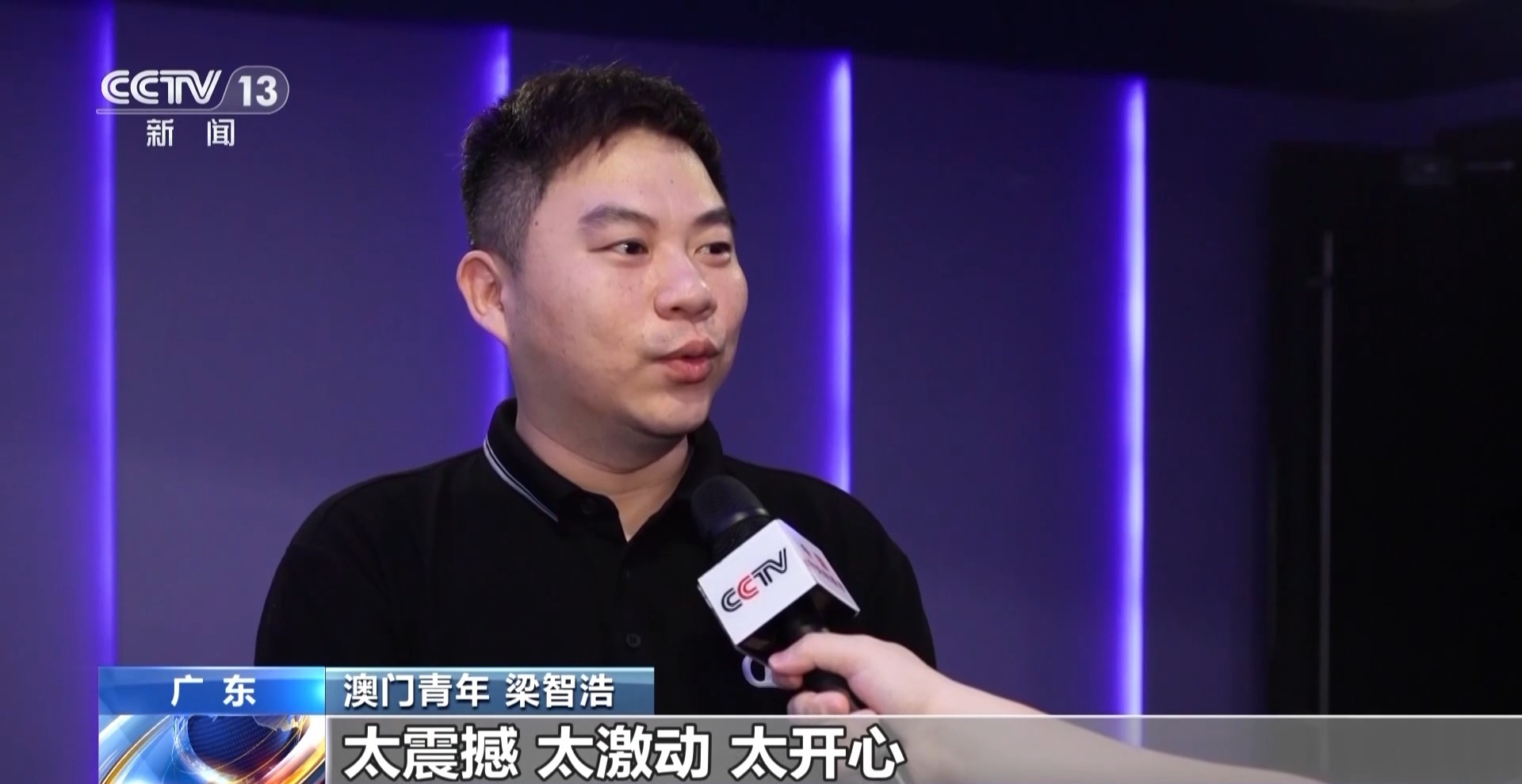 澳門青年 梁智浩:到電影院看閱兵,從來沒試過這么大的屏幕、這么多港澳青年人一起來看閱兵。我心情遲遲未能平復(fù),太震撼、太激動、太開心!