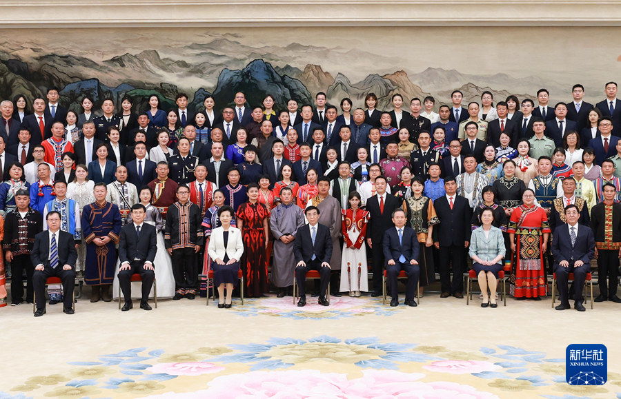 9月5日,中共中央政治局常委、全國政協(xié)主席王滬寧在北京會見全國少數(shù)民族參觀團。新華社記者 王曄 攝