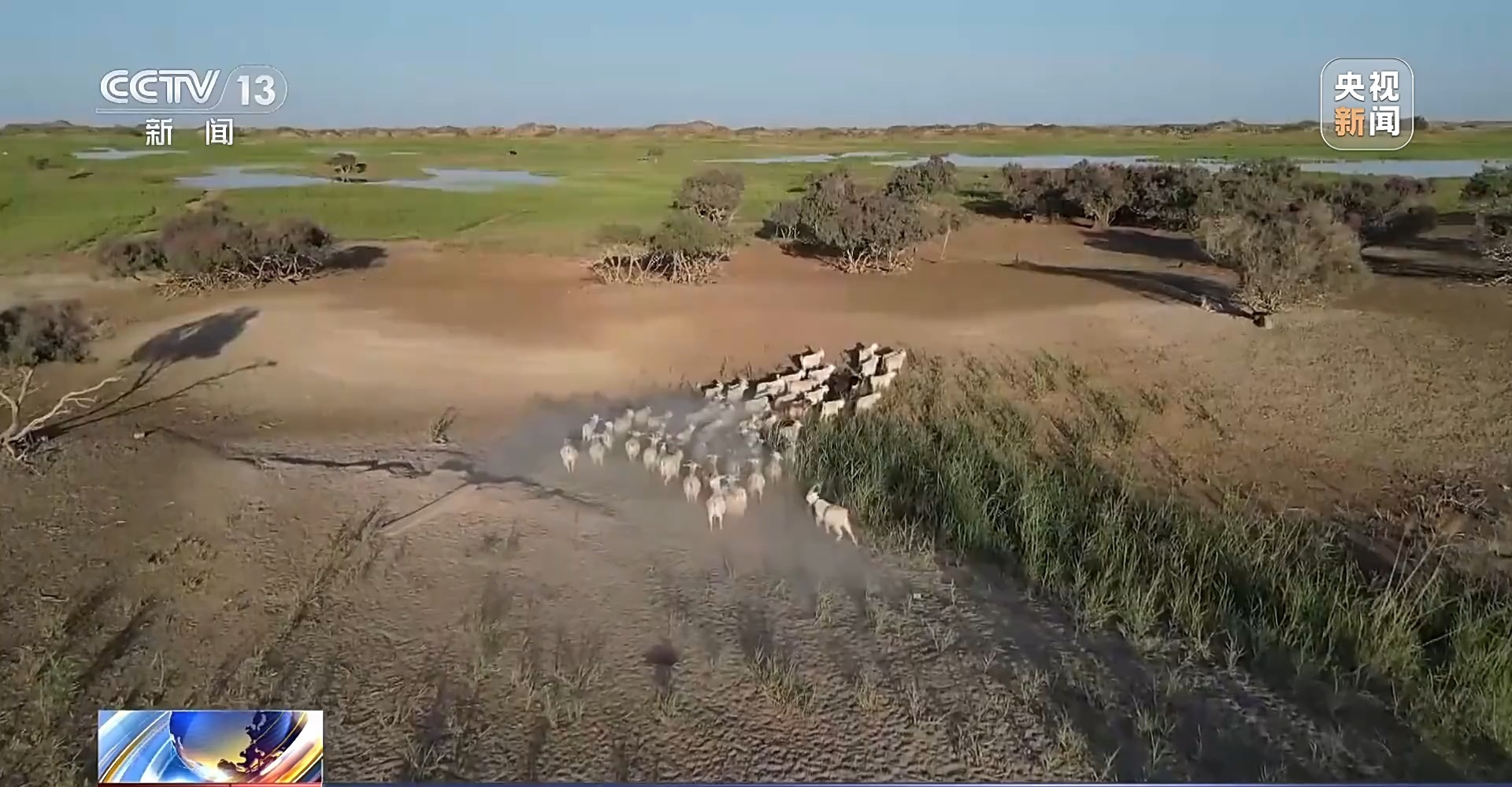 中國科學(xué)院新疆生態(tài)與地理研究所研究員 凌紅波:黃羊不怕人了,閑庭信步地在那兒散步呢。這就是人與自然和諧相處。