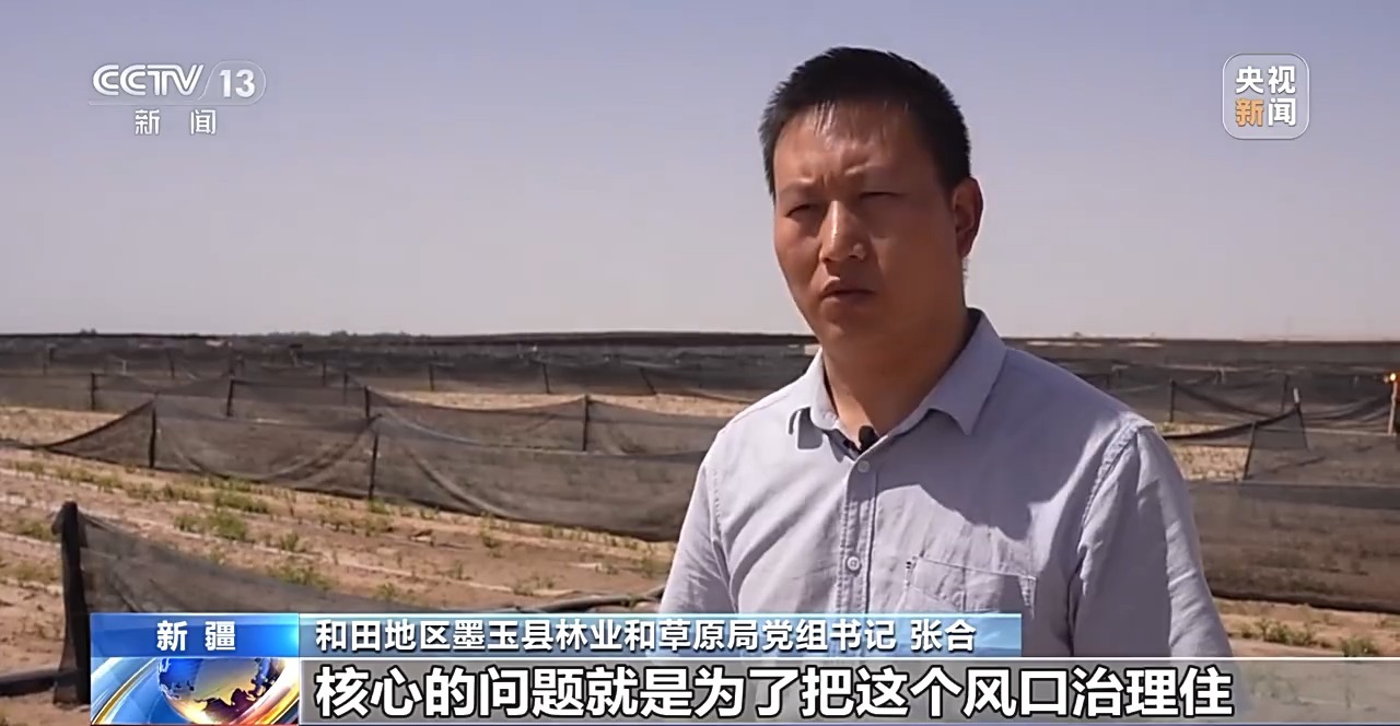 和田地區(qū)墨玉縣林業(yè)和草原局黨組書記 張合:我們選擇這塊區(qū)域鎖邊加厚,核心的問題就是為了把這個(gè)風(fēng)口治理住,減少風(fēng)沙對綠洲內(nèi)部的侵蝕。