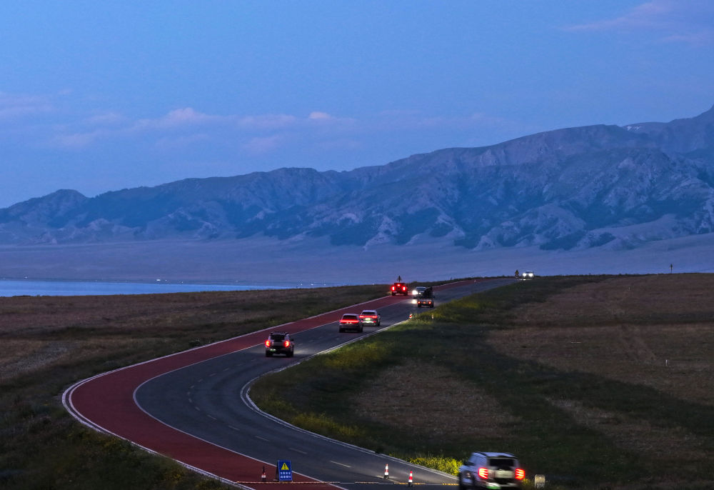 ↑ 9月10日拍攝的賽里木湖和湖畔公路。