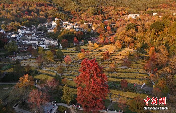 2024年11月11日,初冬時節(jié),黃山市黟縣塔川村景色斑斕。(資料圖 無人機照片) 中新社記者 韓蘇原 攝