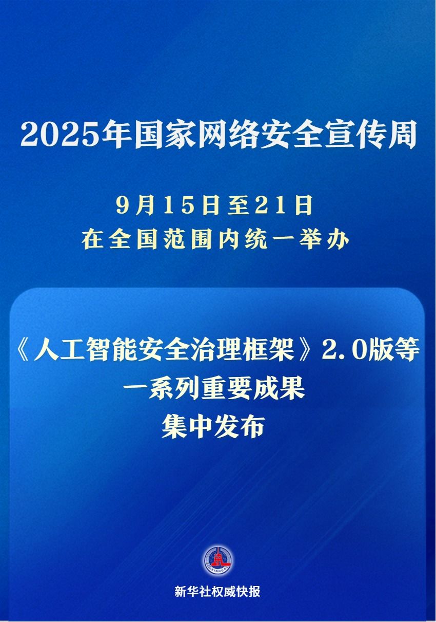 2025年國家網(wǎng)絡(luò)安全宣傳周9月15日至21日在全國范圍內(nèi)統(tǒng)一舉辦,開幕式等重要活動(dòng)在云南昆明舉行。在15日舉行的網(wǎng)絡(luò)安全技術(shù)高峰論壇主論壇上,《人工智能安全治理框架》2.0版、《政務(wù)大模型應(yīng)用安全規(guī)范》、2025年人工智能技術(shù)賦能網(wǎng)絡(luò)安全應(yīng)用測試活動(dòng)結(jié)果等重要成果集中發(fā)布。