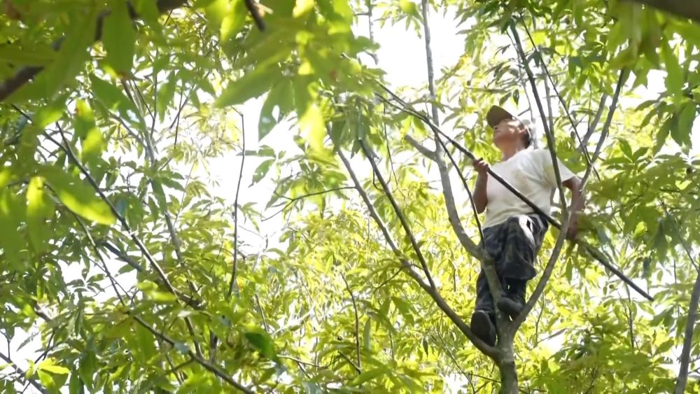 浙江省杭州市臨安區(qū)迎來了一年一度的山核桃采收季。在昌化鎮(zhèn)后營村,林農們正忙著采收。