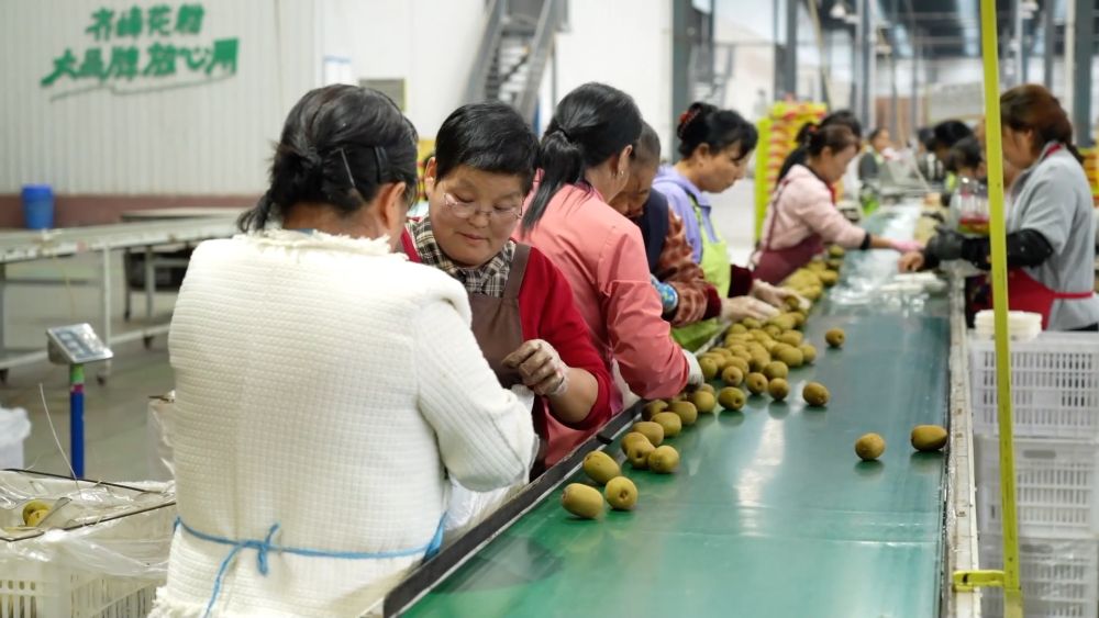 在國家級(眉縣)獼猴桃產業(yè)園區(qū),工人們在車間正忙著清洗、包裝剛采摘下來的獼猴桃,經過檢驗后的獼猴桃將被運往世界各地。