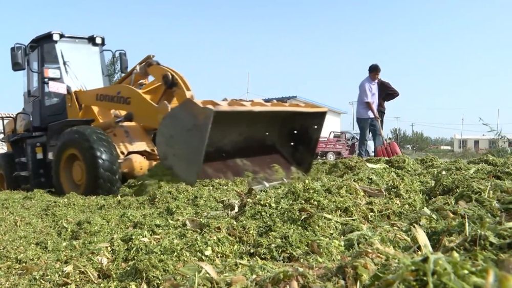 在焉耆縣永燁牛羊生態(tài)養(yǎng)殖專業(yè)合作社內,工作人員將新鮮采收的青貯玉米搬到青貯窖中壓實,為牲畜越冬提前備足“口糧”。