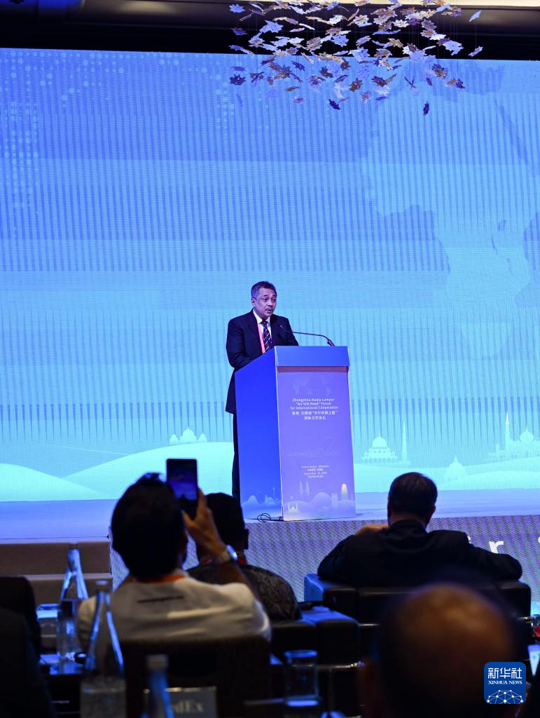 這是9月18日在馬來西亞吉隆坡國際機(jī)場(chǎng)舉行的鄭州-吉隆坡“空中絲綢之路”國際合作論壇上拍攝的馬來西亞交通部長陸兆福。新華社記者 程一恒 攝